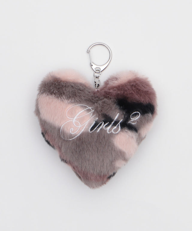 Girls²コラボデザインのハート型ファーキーホルダー。