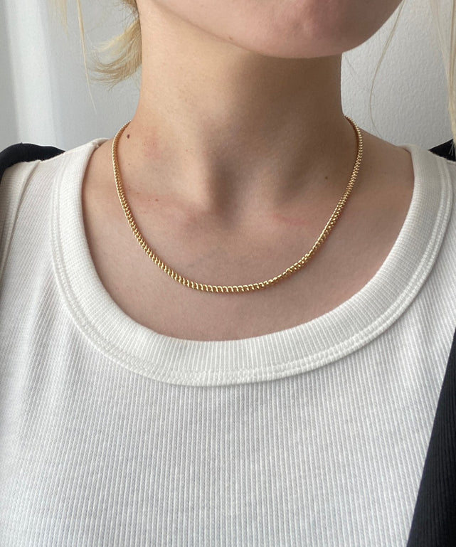 シンプルなデザインで幅広いスタイリングと相性抜群のチェーンネックレス。