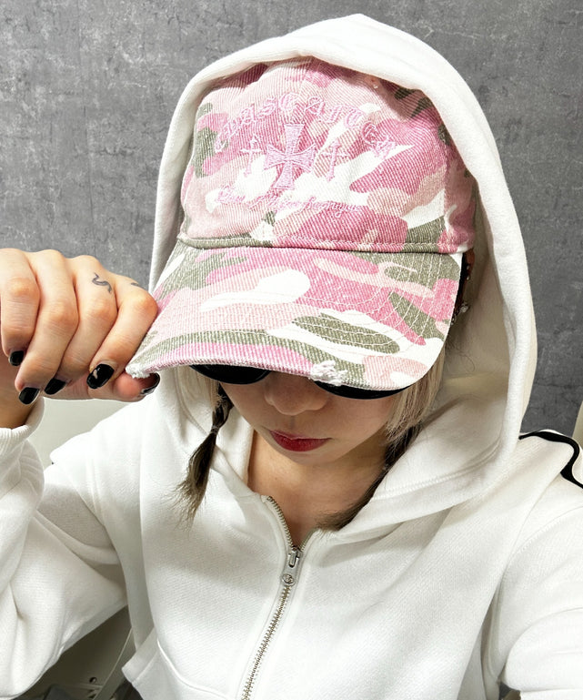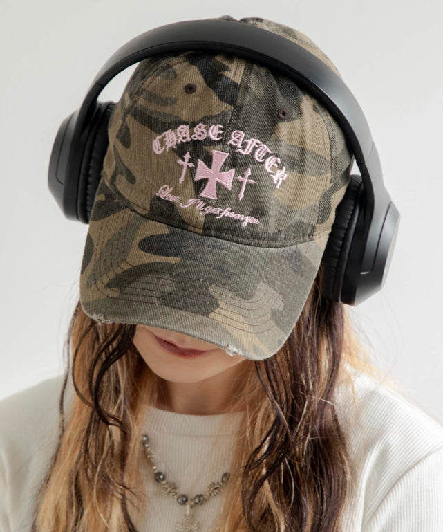 クロス刺繍カモフラキャップ
