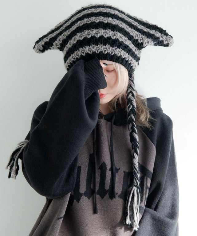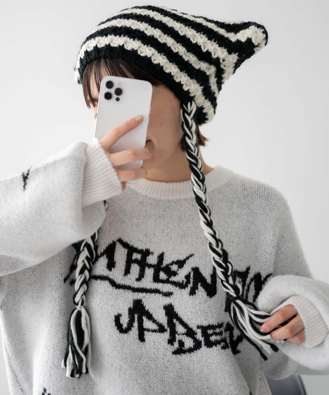 トレンド感のあるネコミミボーダーニットキャップ。