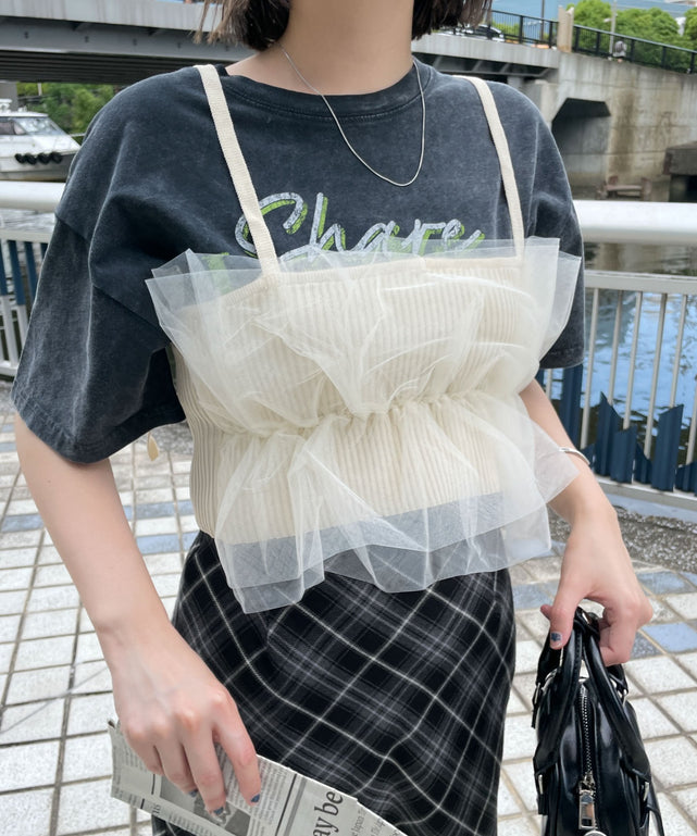 存在感のあるフリルが可愛いチュール素材のビスチェ。