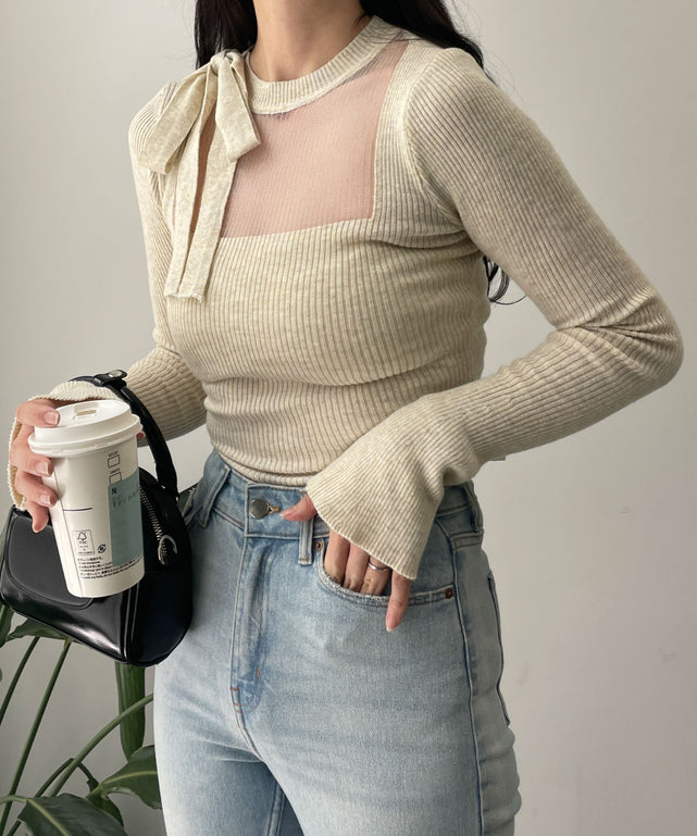 リボンネックデザイントップス