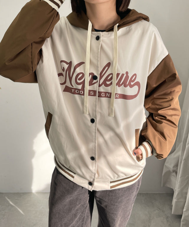 フロントのロゴと春らしいカラーが目を引くビッグシルエットのブルゾン。