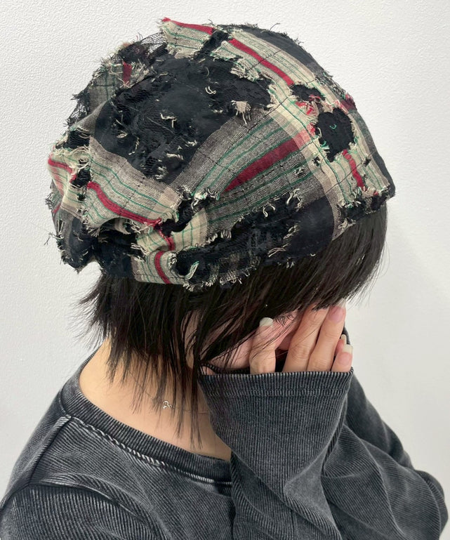 チェック柄×ダメージ加工がおしゃれなニット帽。