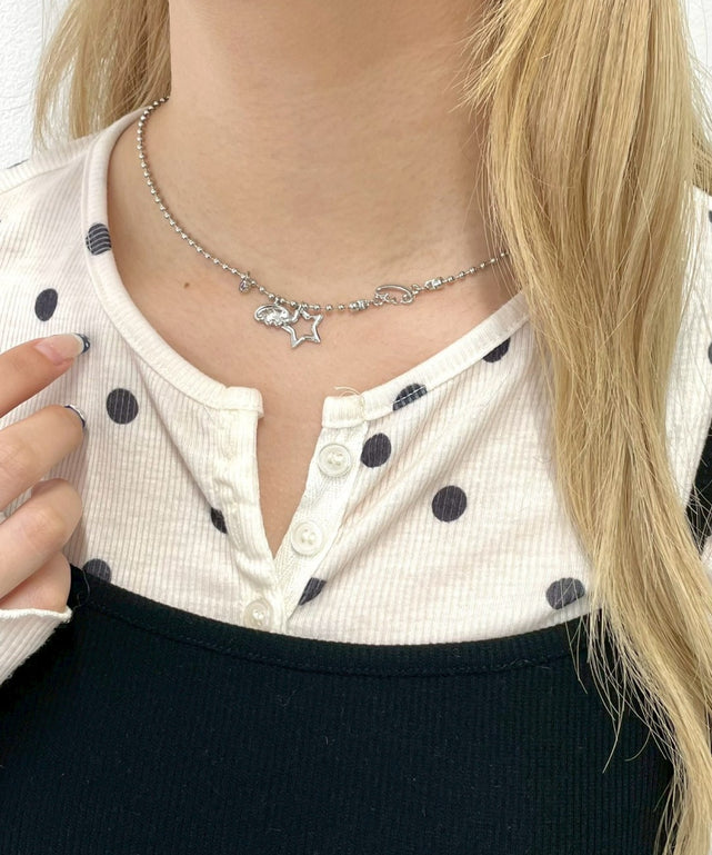 Lスターモチーフボールチェーンネックレス