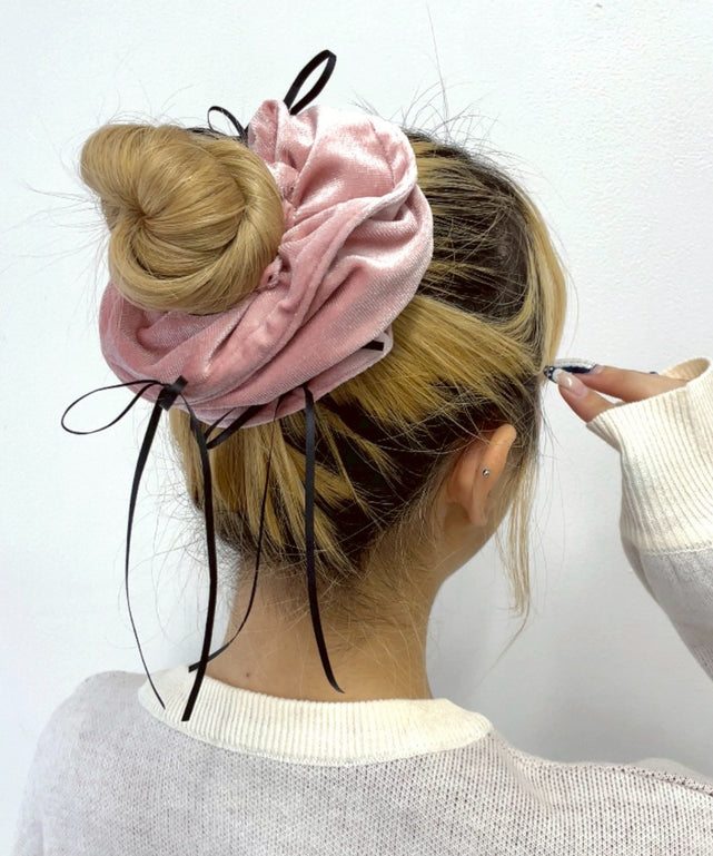 秋冬らしいベロア素材×リボンの組み合わせで、