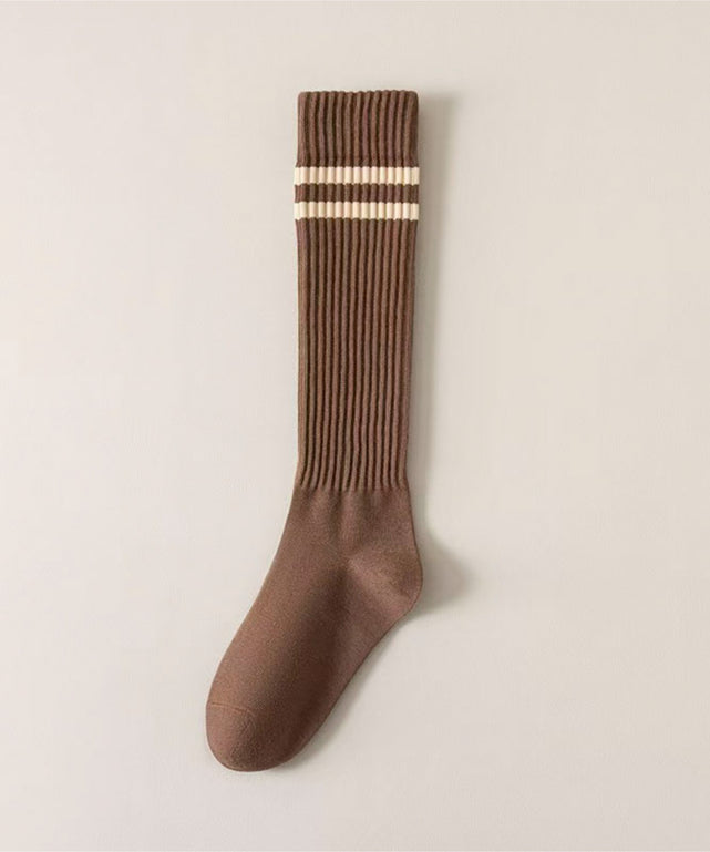 ふくろはぎ部分に入ったラインがポイントのハイソックス。