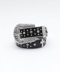 Lラインストーンクロススタッズベルト/ブラック