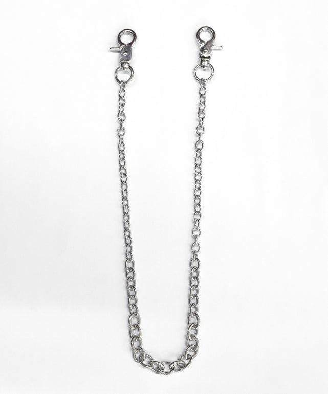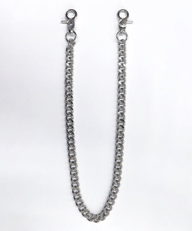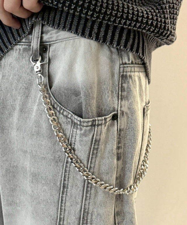 腰回りにインパクトを与えるウォレットチェーン。