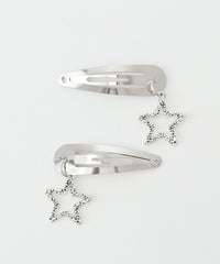 シンプルなシルバーのパッチンピンに柄ごとに異なるスターのモチーフチャームがついたヘアピン。