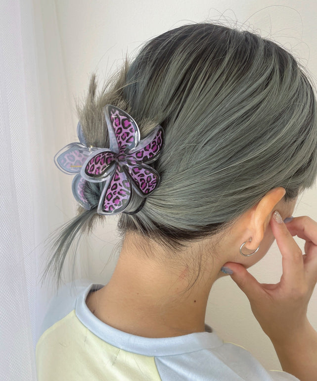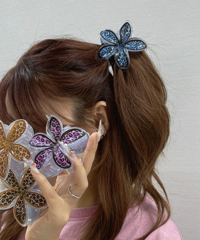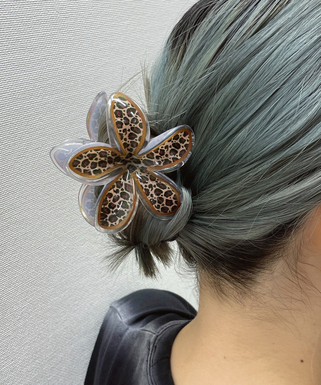 レオパード柄のフラワーデザインが可愛いバンスクリップ。
