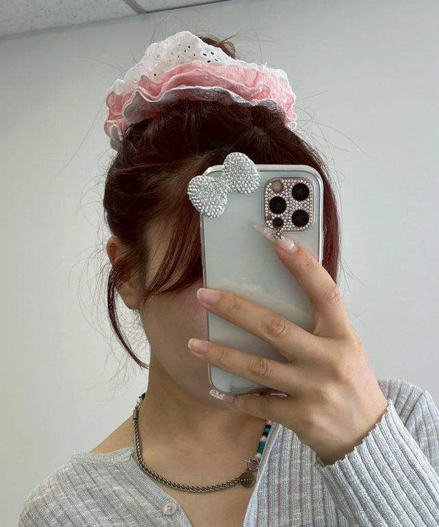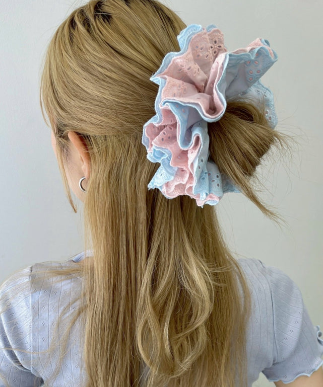 Lバイカラーパンチングレースシュシュ/Lピンク