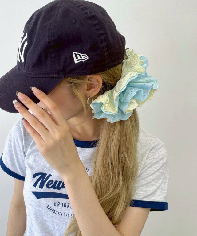 Lバイカラーパンチングレースシュシュ/Lイエロー