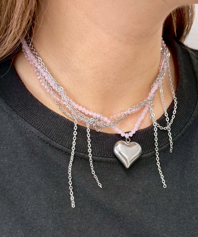 LBIGハートモチーフビーズジャラネックレス/Lピンク