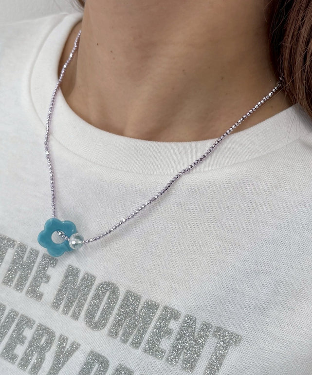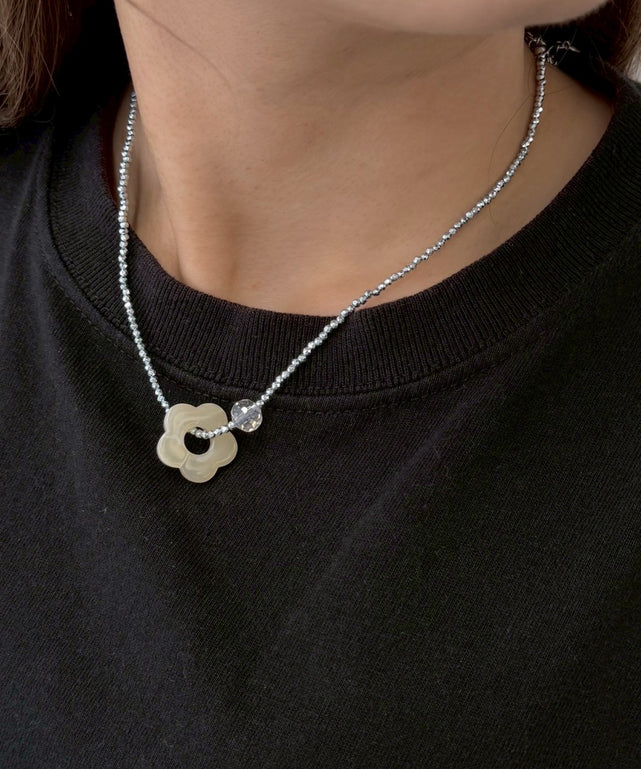お花のパーツが可愛いビーズネックレス♪