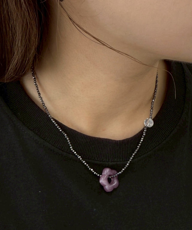 Lフラワーモチーフビーズネックレス