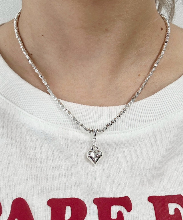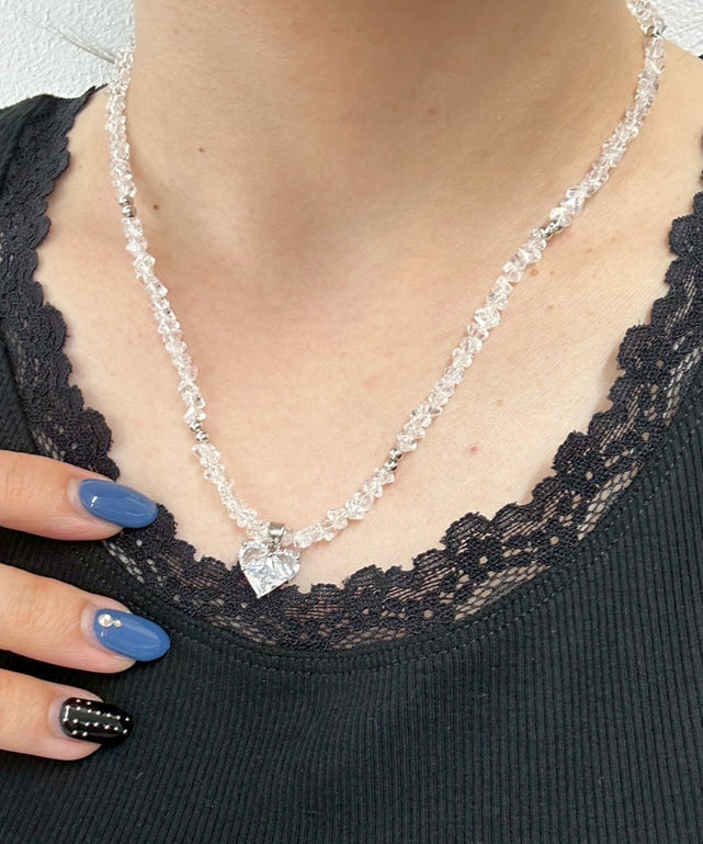 ハートのパーツが可愛いビーズネックレス♪