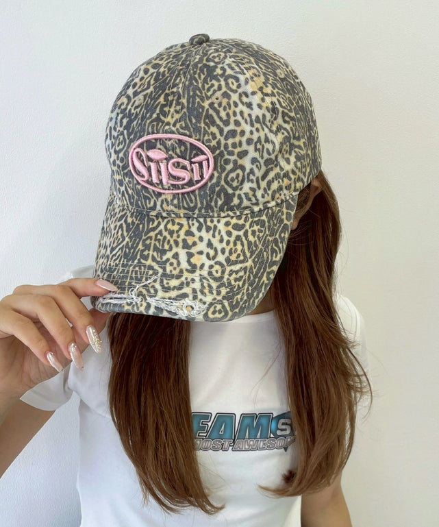 Lレオパードダメージ刺繍キャップ