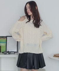 ワンショルダーデザインがポイントのショルダーケーブルニット◎