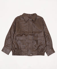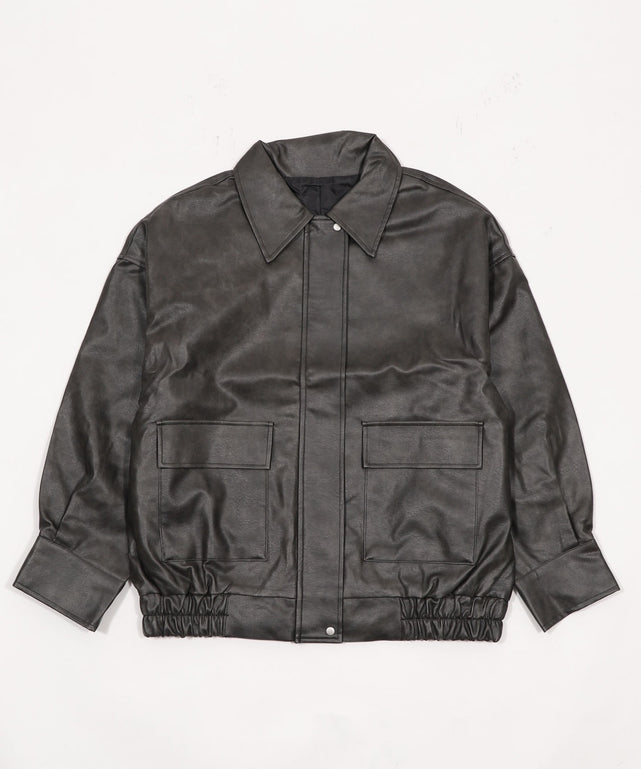 【PUレザーで大人っぽさUP!ステンカラーブルゾン】