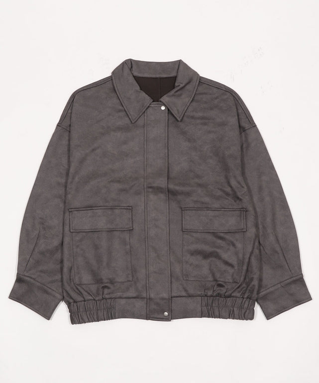 ヴィンテージスウェードステンカラーブルゾン/チャコール