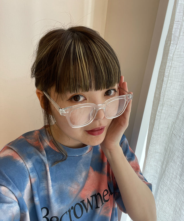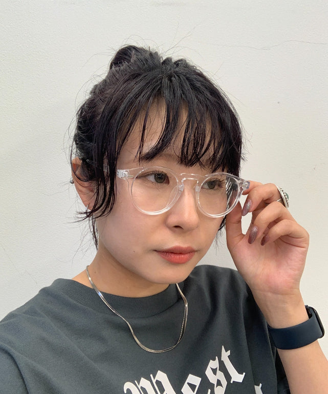 クリアレンズがコーディネートの邪魔をせず、様々なテイストと相性◎