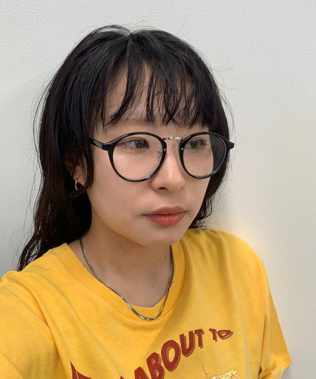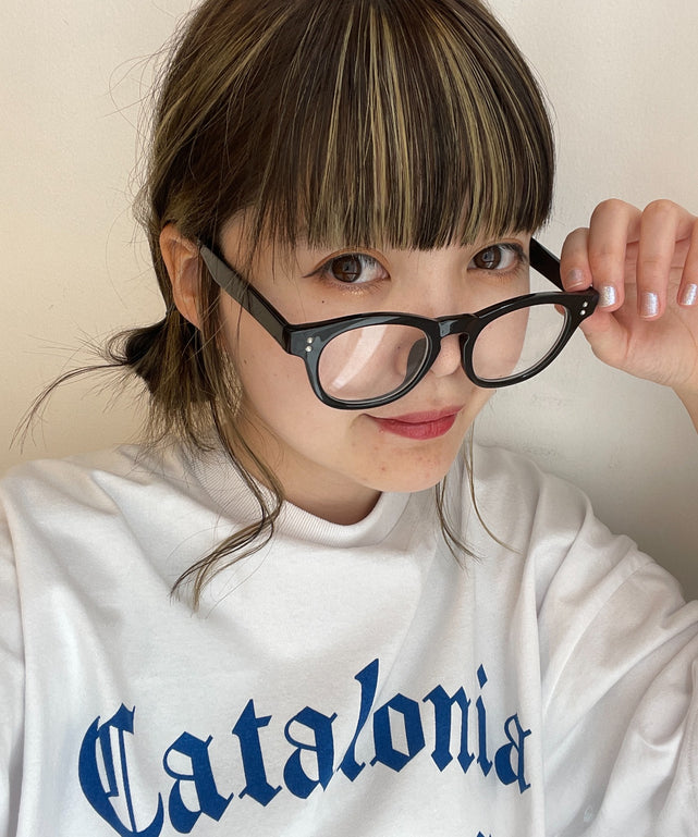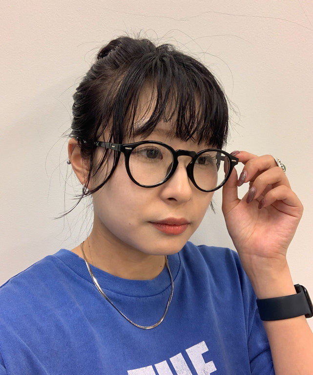 黒ブチはコーディネートのアクセントになりやすく小顔効果も。
