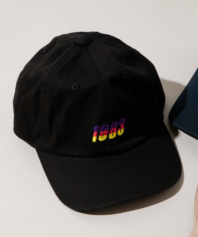 ブランド設立年「1983」をグラデーションカラーの刺繍で仕上げたデザインです。
