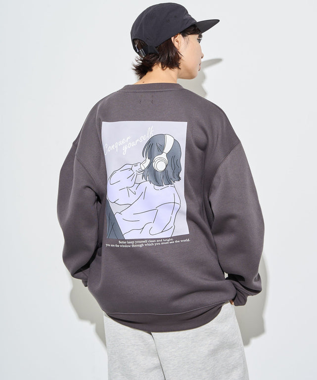 胸元のワンポイントとバックプリントのガールイラストが目を引くアイテム。