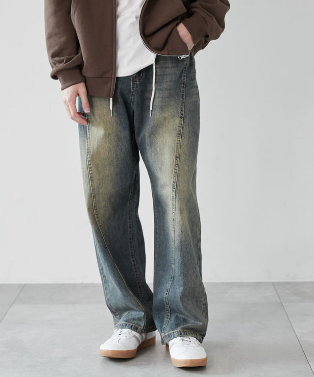 【シルエットが特徴的なスウィッチングデニム】