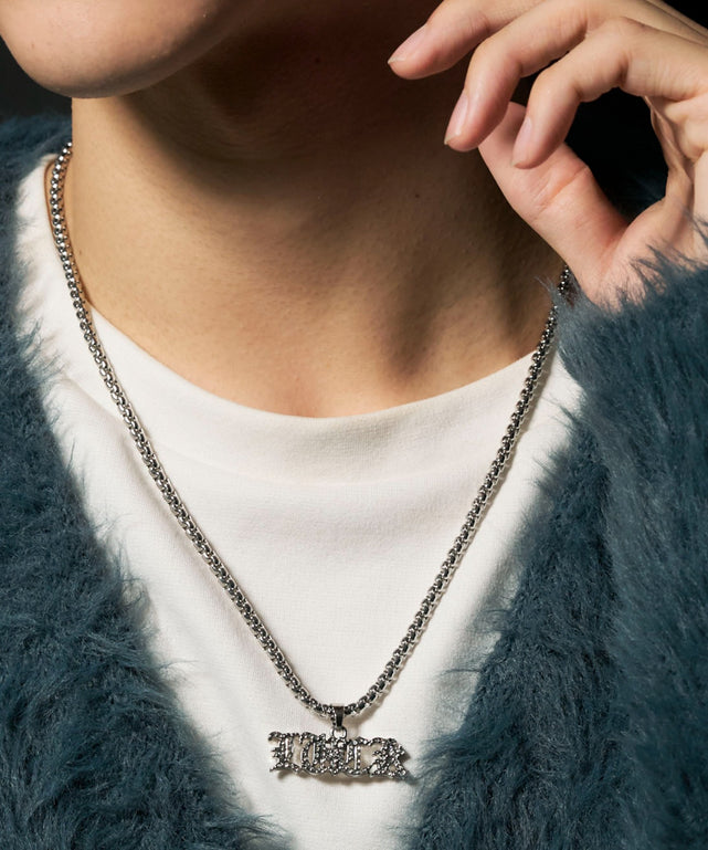 シンプルなチェーンのトップにビジューが施されたモチーフチャームがついたデザイン。