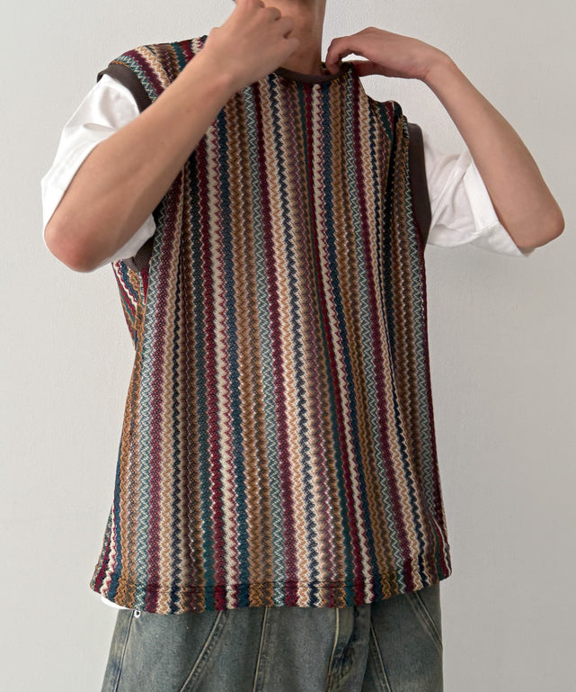 柄が特徴的で一枚で様になるアイテムでメッシュ素材のベストなので