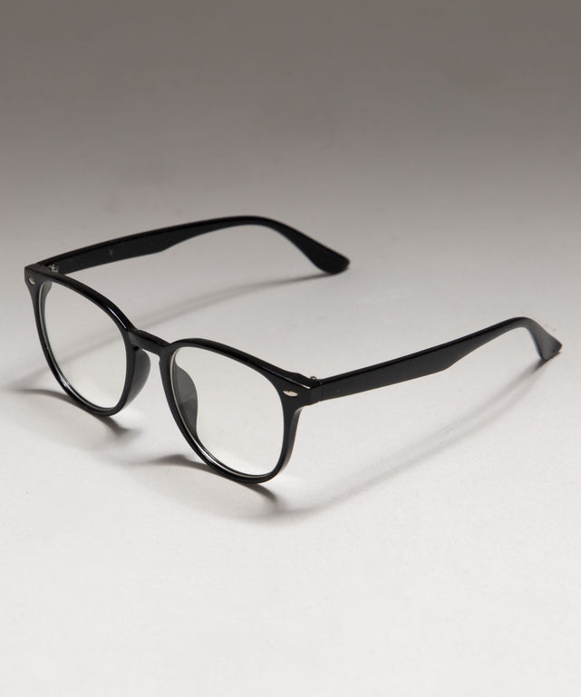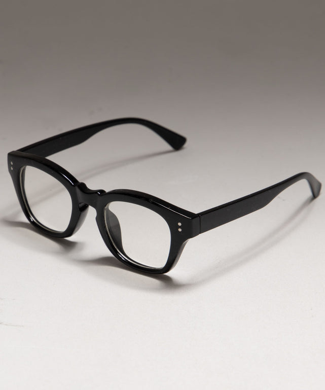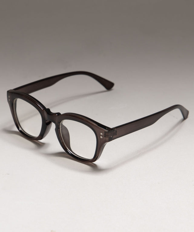 シンプルで追懐やすい、定番デザインのセルフレームアイウェア。