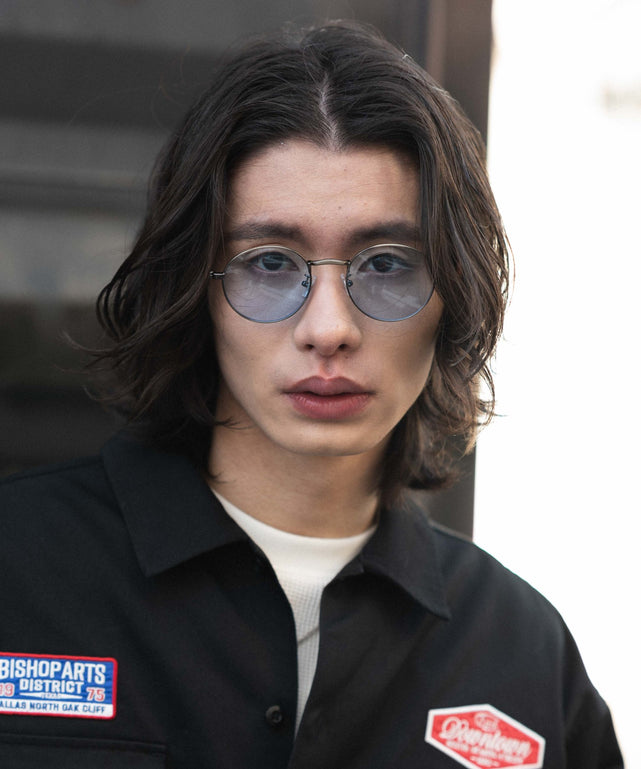 細身のメタルフレームにカラーレンズを組み合わせた、上品で軽やかな印象のサングラス。