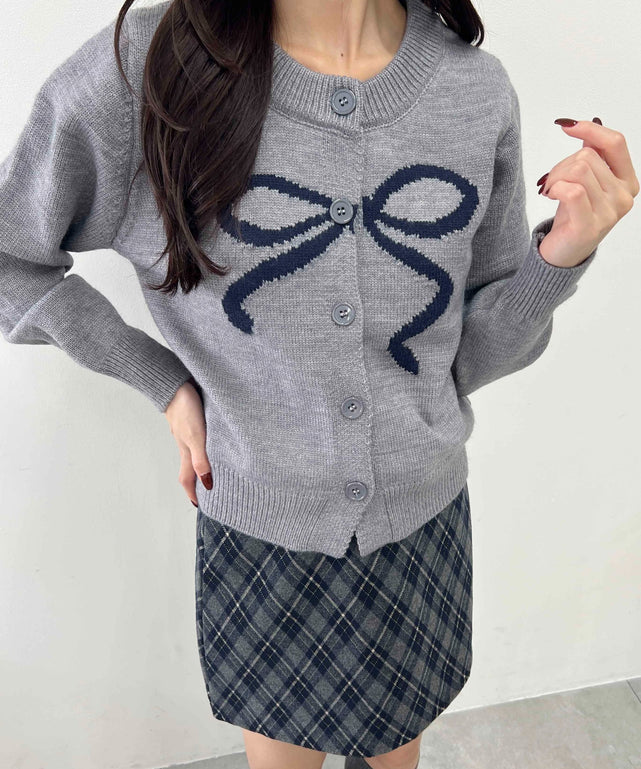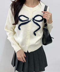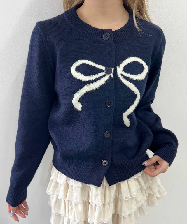 立体的なリボンデザインが目を引く、やさしいニットカーディガン