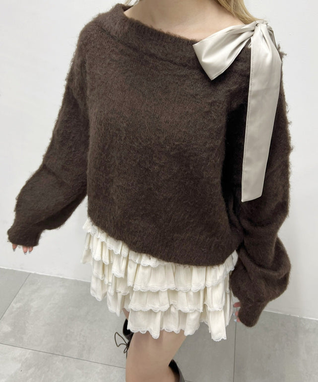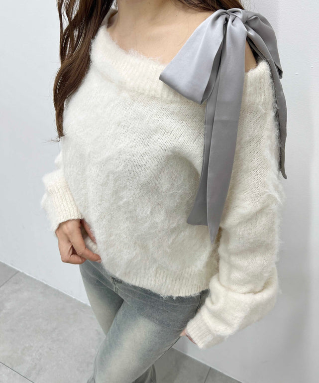 リボンワンショルニット