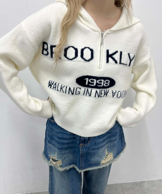 セーラー襟が可愛らしい、ゆったりシルエットのニットトップス