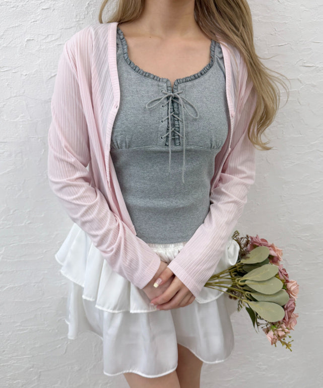 安心感のあるやわらかい針抜き生地にミニフリルを付けました。