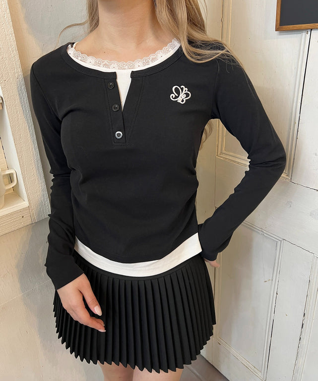 レースネックレイヤードロンT