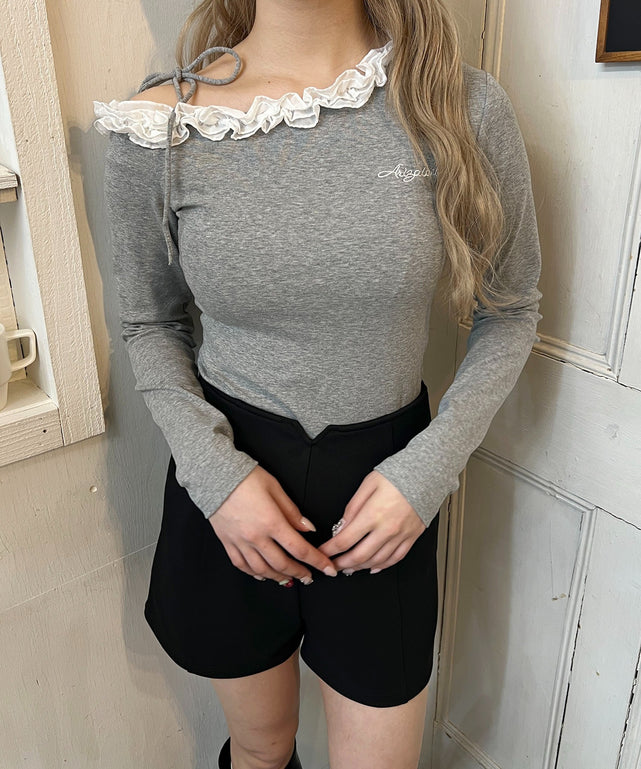 ワンショルデザインで程よく肌見せ、大人っぽい韓国ガーリーなカットソー