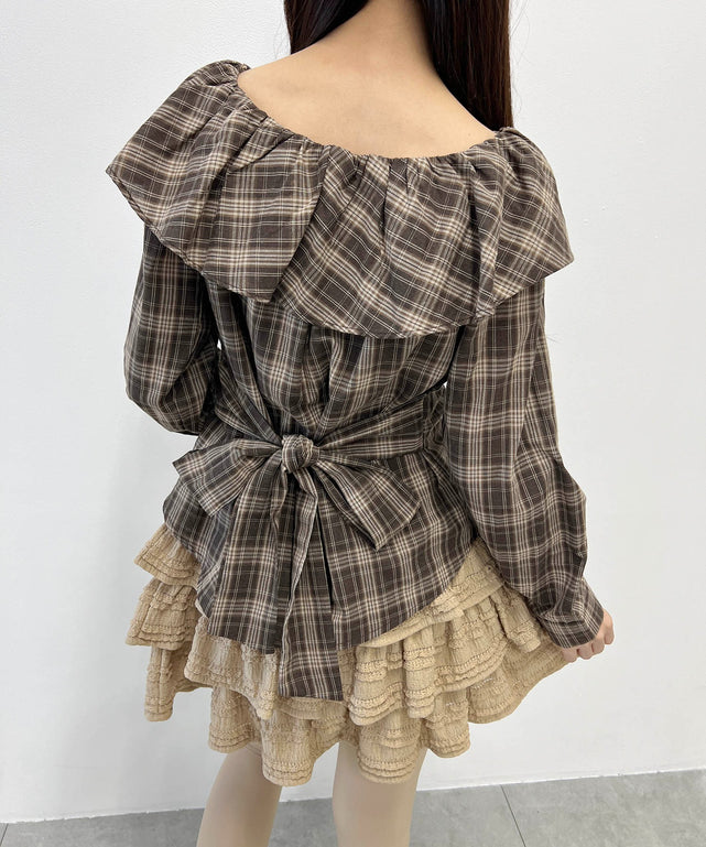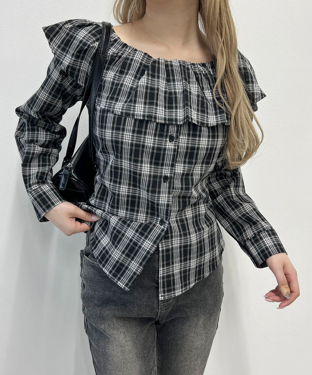 オフショルチェックシャツ