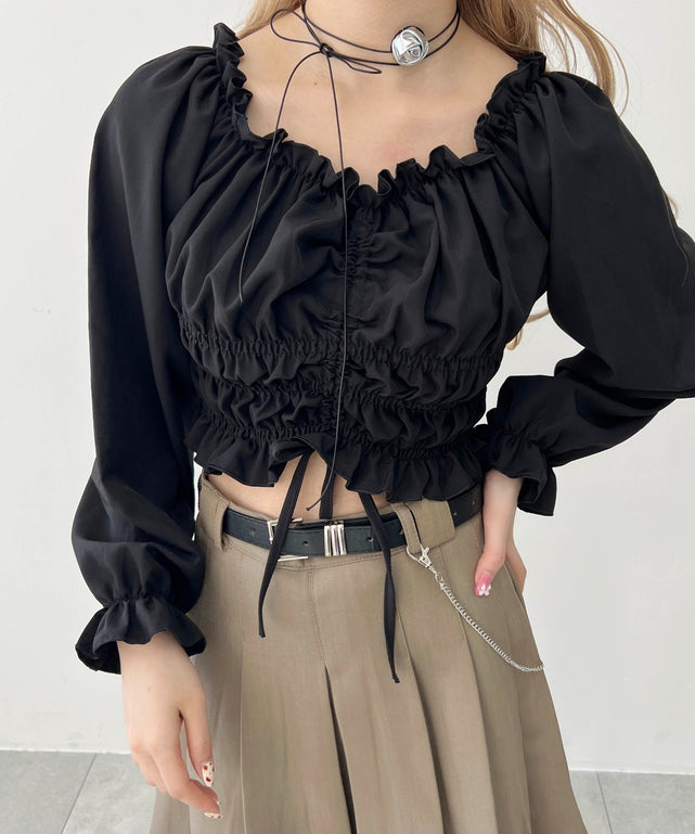 ギャザーたっぷりのデザインで、立体感のあるシルエットに。