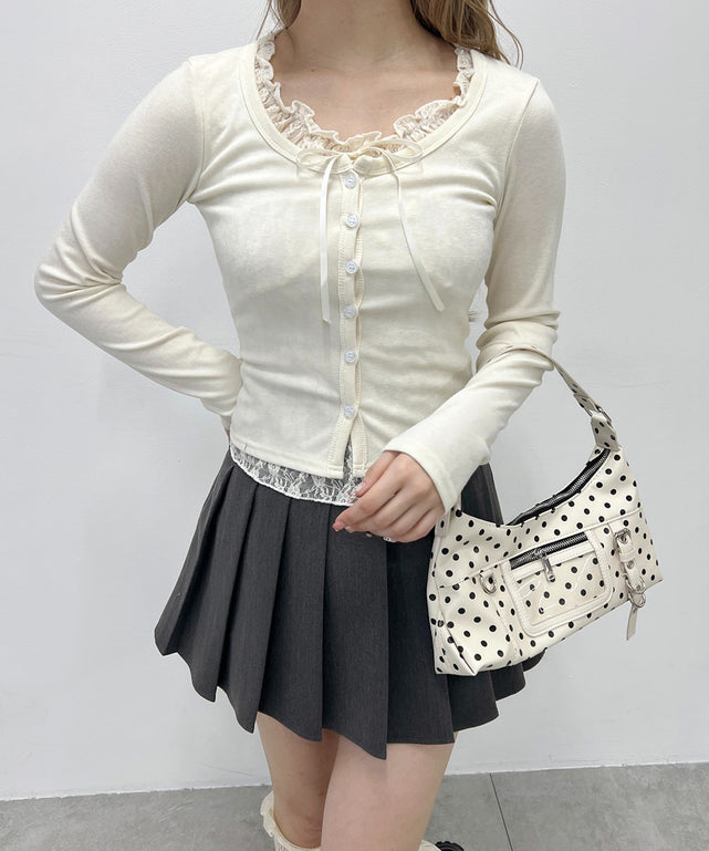 フリルレースレイヤードLSトップス/ホワイトアイボリー モデル:160㎝ F着用