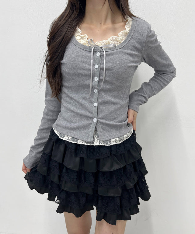 フリルレースレイヤードLSトップス/グレー モデル:157㎝ F着用