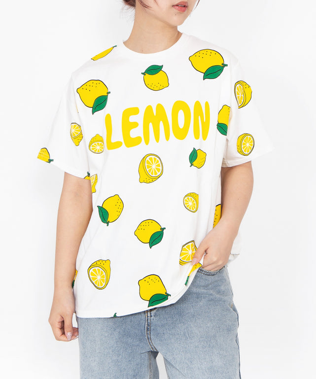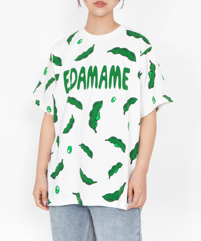 全面にプリントされた総柄Tシャツ。