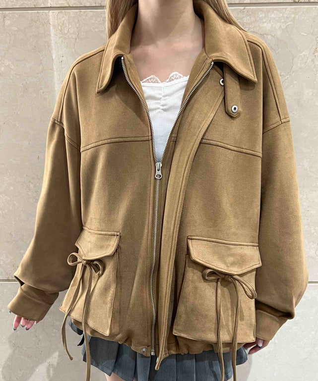ポケットにはリボンを付けてガーリーさとのバランス感をプラス。