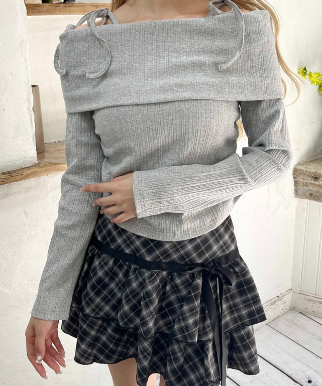 オフショルリボントップス