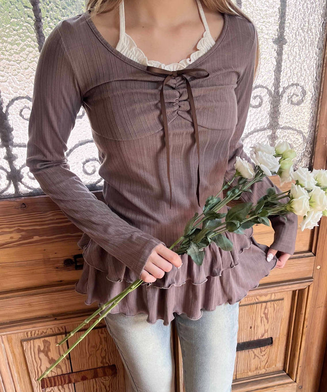 ホルターネックのキャミを重ねたようなフェイクレイヤード