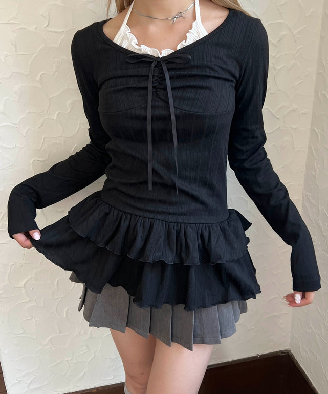腰回りに2段フリルを付けて、ボリューム感をバランスよく整えました。