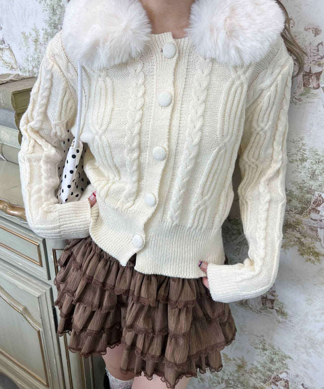 ファーカラーニットカーディガン